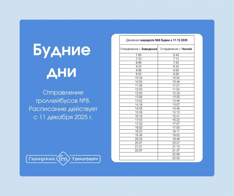 Добавлены утренние и вечерние рейсы троллейбуса №8.
