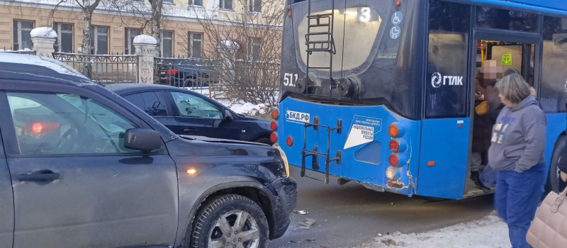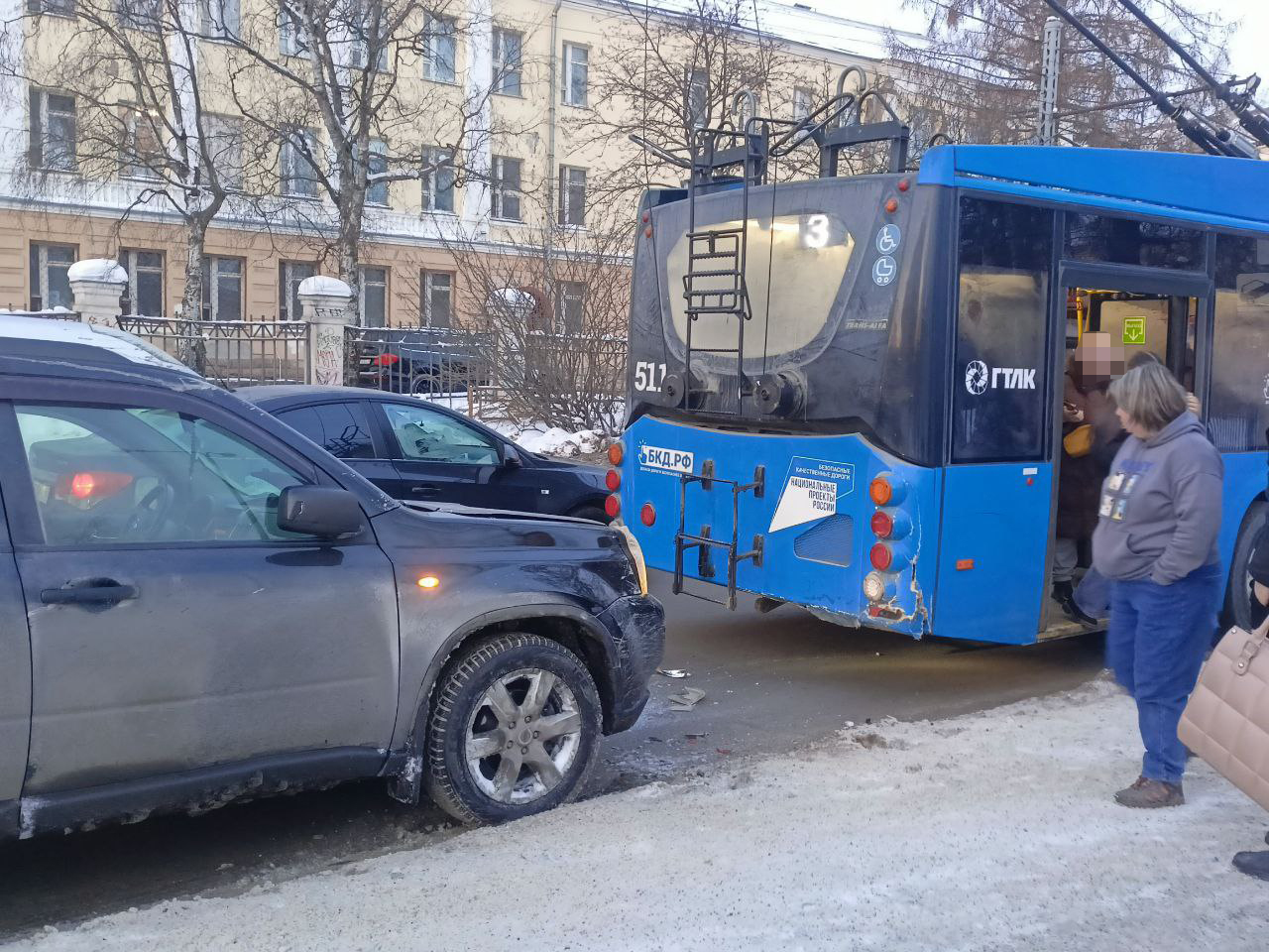 Авария с участием троллейбуса и внедорожника произошла утром 9 февраля.