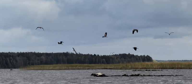Туристка насчитала 30 серых цапель в Водлозерье.