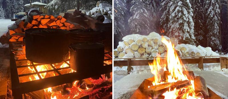 В редакцию «Фактора» любители активного образа жизни прислали фото с трассы «Фонтаны» и сообщили, что на развилке теперь можно не только согреться у костра горячим чаем, но и отведать ухи.
