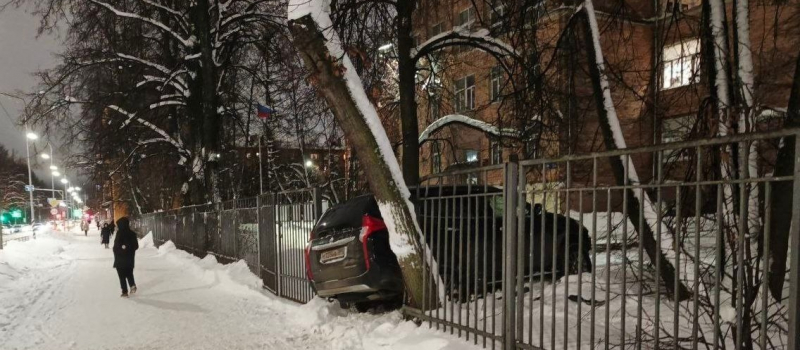 Внедорожник снес забор у школы имени Александра Пушкина в Петрозаводске