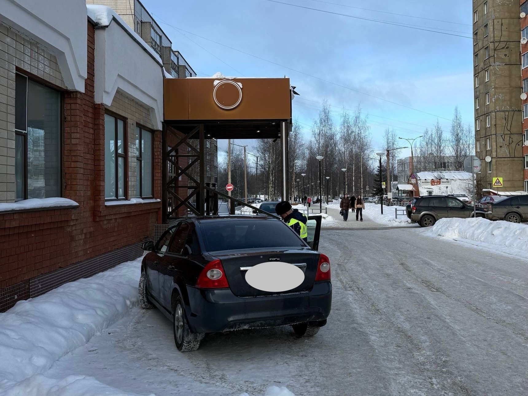 На Древлянке водитель заплатил 2 тысячи рублей за то, что по пешеходной дорожке подъехал к кафе.