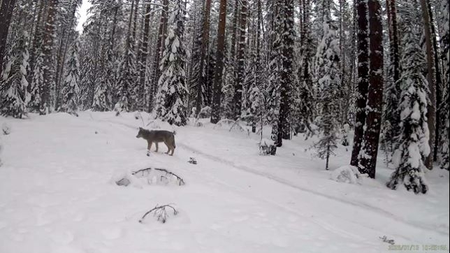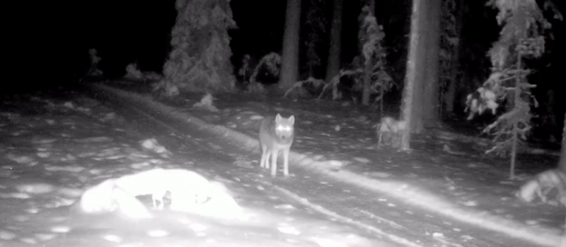 Волк и заяц попали в фотоловушку инспектора Сыроежина в Карелии