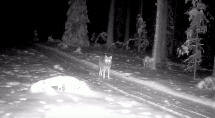 Волк и заяц попали в фотоловушку инспектора Сыроежина в Карелии