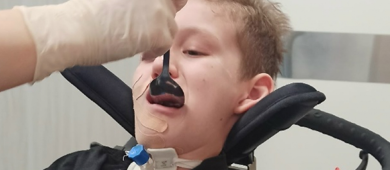 Пострадавший от укуса клеща в Карелии 10-летний Всеволод начинает пробовать еду через рот.