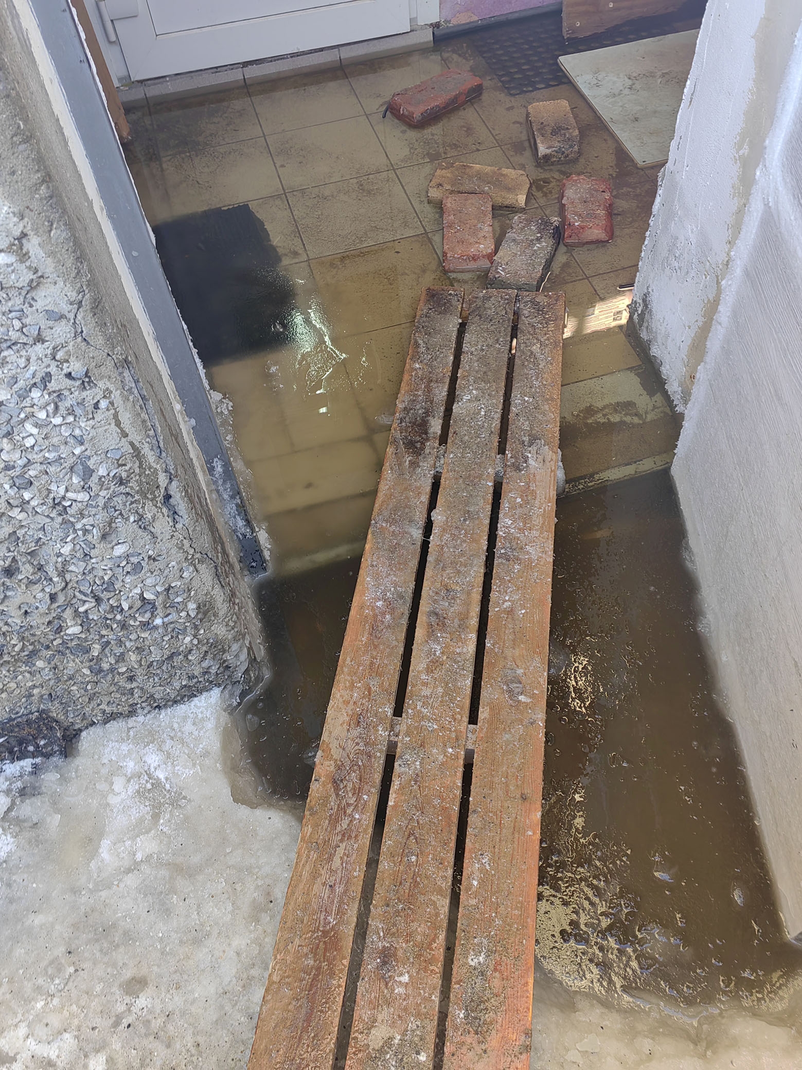 Жители дома № 8 по Порт-шоссе в Беломорске мучаются от зловонных рек, которые стекают в подъезд.