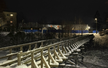 Специалисты установили первый пролет и уложили деревянный настил. В ближайшее время начнется установка второй русловой опоры временного моста и завершится устройство насыпи для будущего подхода со стороны центра Олонца. Ранее специалисты обустроили насыпь с противоположной стороны.