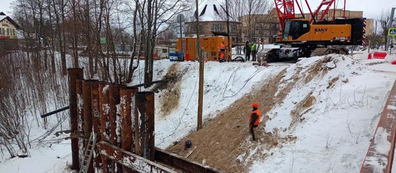 В Олонце продолжаются работы по реконструкции моста через реку Мегрега. Об этом рассказали в Минтрансе Карелии. Сейчас задача строителей - построить временный мост, чтобы начать демонтировать старую аварийную переправу.