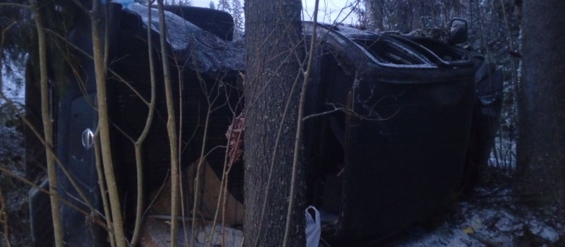 Вылетевший в кювет автомобиль в Карелии остановило дерево