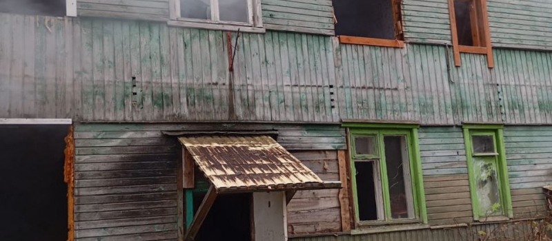 Мусор вспыхнул в заброшенном двухэтажном доме в Суоярви.