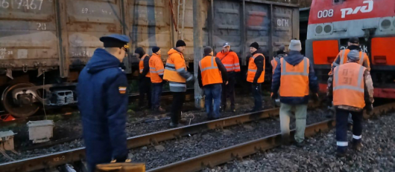 Железнодорожники устраняют последствия схода вагонов на станции Янега в Ленинградской области.