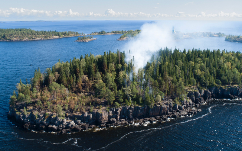 Остров Дивный горит на Валаамском архипелаге в Карелии.
