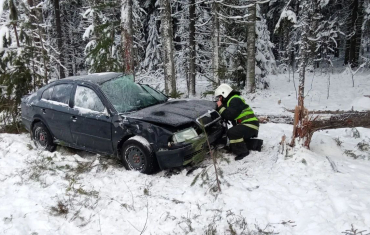 Ранее пенсионер на иномарке упал в кювет с трассы в Карелии, есть пострадавшие.