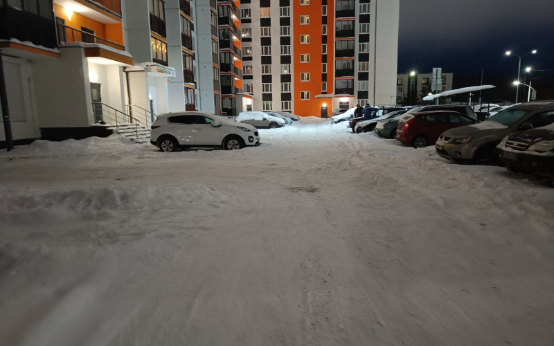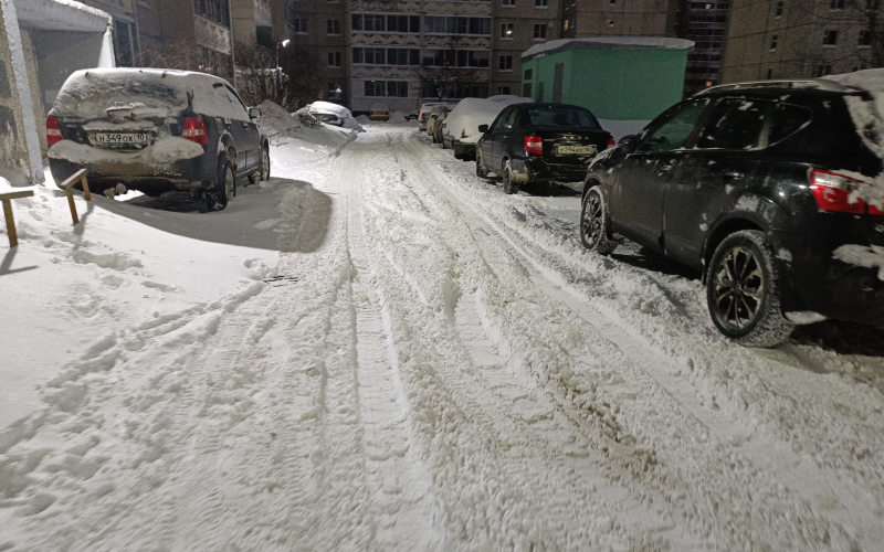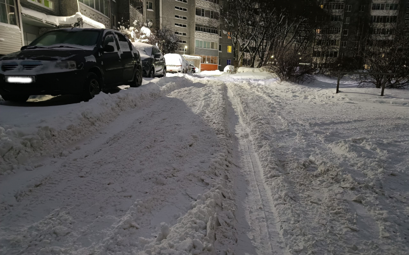 «Главные дороги в Петрозаводске нормально почищены. Но из дворов выезжать автомобилистам сегодня было не очень просто, — отметила автор фото. — Тротуары тоже не везде вычищены, народ тропинки протоптал».