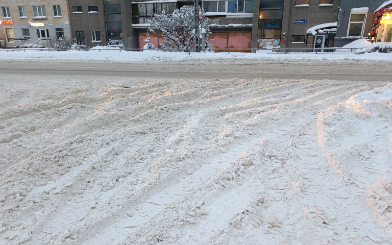 В редакцию «Фактора» читательница прислала фото, на которых запечатлела дорогу на работу по засыпанному снегом Петрозаводску в первый день после длинных новогодних выходных.