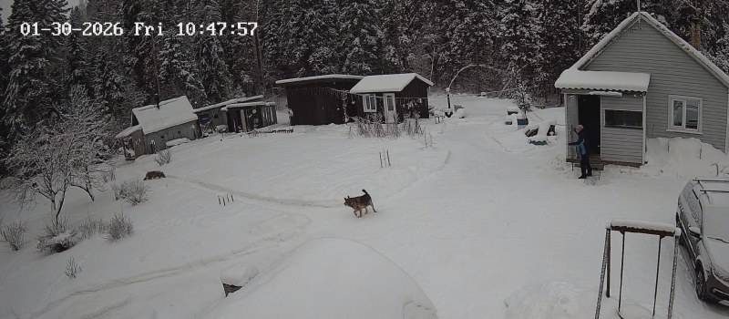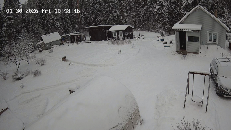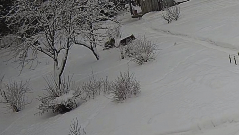 Камера на дачном участке запечатлела, как жители Питкярантского округа отбивали собаку у волков.