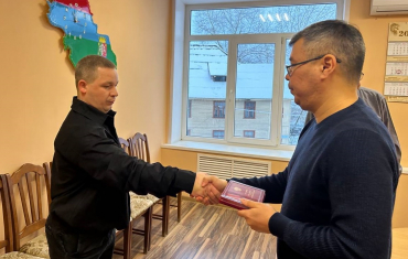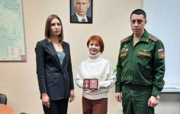 Глава администрации Лоухского района Кристина Серебрякова вместе с военным комиссаром вручили местному жителю Роману Козлова медаль Суворова.