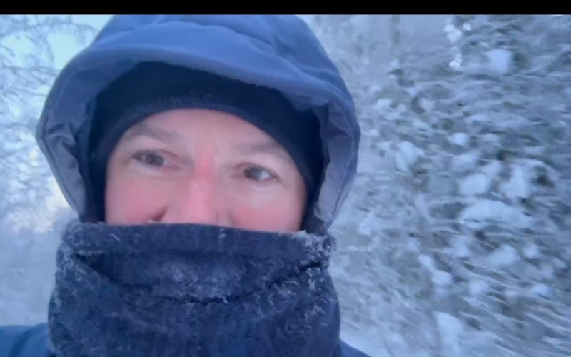 Заместитель премьер-министра правительства Карелии по вопросам экономики Олег Ермолаев вынужденно вышел на прогулку в минус 27.